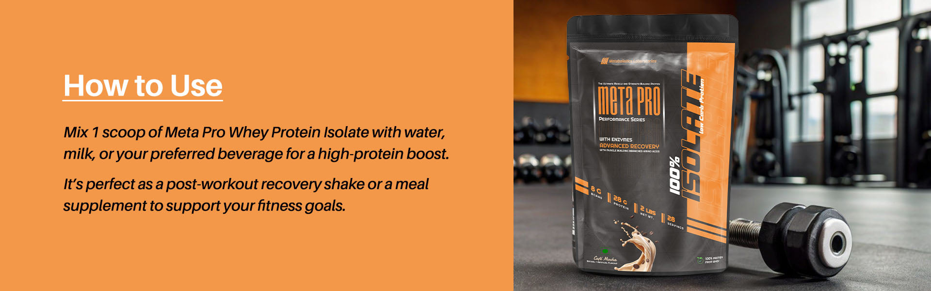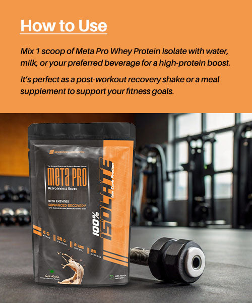 Mix 1 scoop of Meta Pro Whey Protein Isolate with water, milk, or your preferred beverage for a high-protein boost. It’s perfect as a post-workout recovery shake or a meal supplement to support your fitness goals.