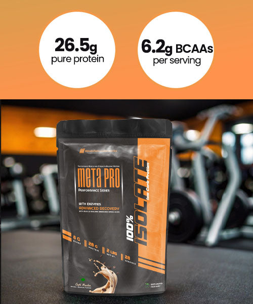 Meta Pro Whey Protein Isolate is a premium supplement designed to meet the nutritional needs of fitness enthusiasts, athletes, and health-conscious individuals. Packed with 26.5g of pure protein and 6.2g BCAAs per serving, it helps in building lean muscle, enhancing muscle recovery, and supporting a healthy metabolism. This whey protein isolate is crafted for those aiming to reduce muscle loss, improve immunity, and achieve their fitness goals.